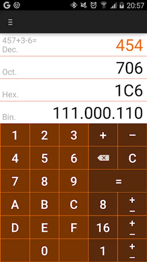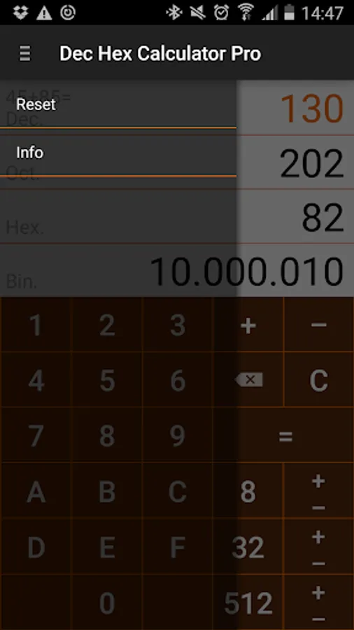 With this app, modern and clear flat design, you can convert in no time decimal to octal, hexadecimal and binary values.