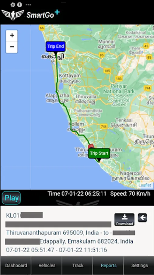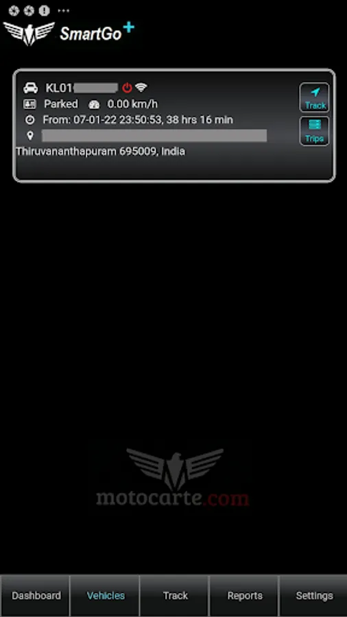 SmartGo+ is a GPS vehicle tracking application from MotoCarte.com. It is a smart, simple, easy to use vehicle tracking app for vehicle owners. SmartGo has multiple features like live tracking, playback of trips, trip reports, pdf report etc.