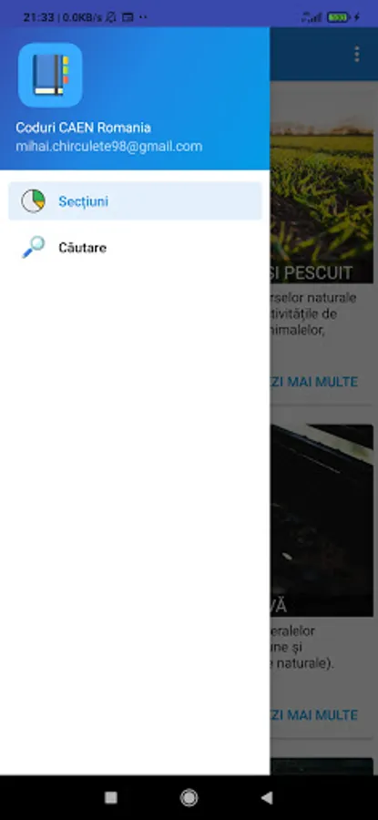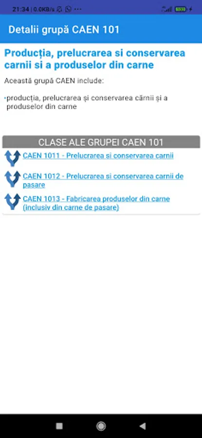 The application offers you both the possibility to search for CANE codes by the sections in which they are divided and by keywords if you already know what you want to find.