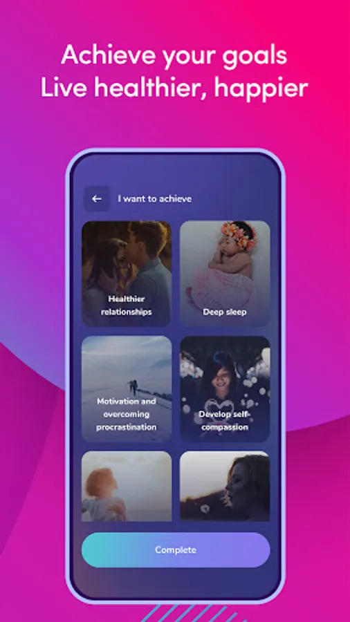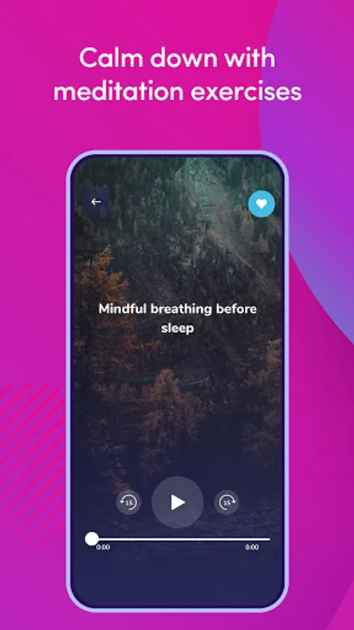 A large collection of mindfulness meditation exercises is waiting for you. The mood tracker will show the best exercises for you. Take the first step of self-care to manage your mental health.
