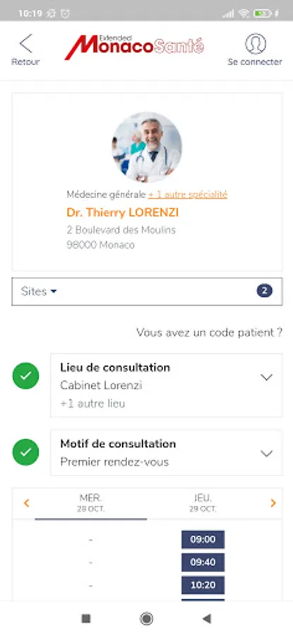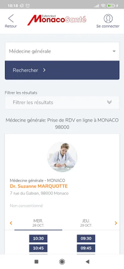 Download the Monacosante mobile application easily to find and make an appointment online with your doctor either in a practice or in a health establishment in Monaco.