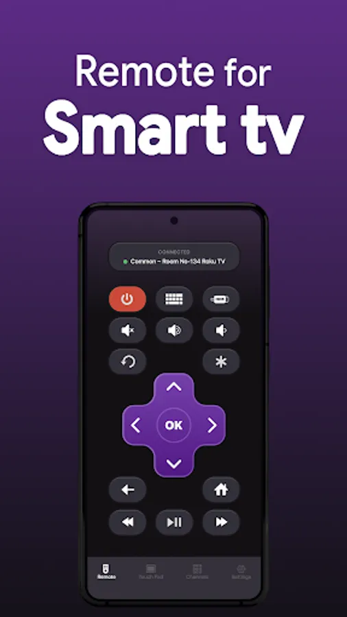 Roku Remote is a full-featured TV remote control app that allows you to easily control your Roku Streaming Players and Roku TVs from your smartphone. After a simple pairing procedure, you can use this smart control app to manage TV channels & apps, control volume, enter text, and power on/off to Roku TV in a simple way. Access to movies, music, and games will become simpler and easier, and you will love your Roku even more. You only need to connect your Android device and Roku to the same Wi-Fi network.