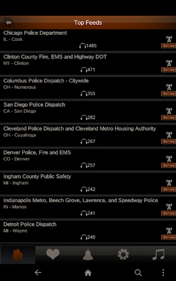 * Configure alerts to have the app notify you when lots of people are listening to a scanner (indicating that something big may be happening).