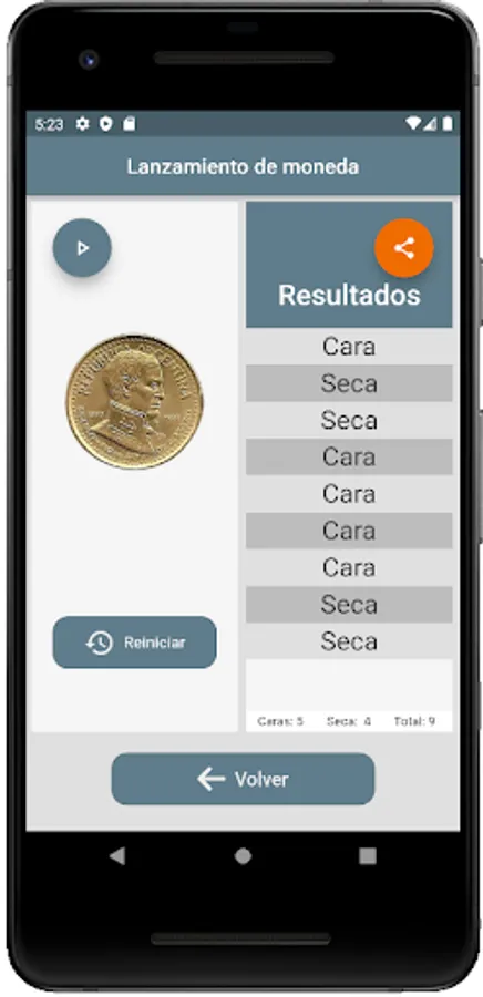 - Simulate N tosses of the coin to later analyze and/or share the result obtained.
