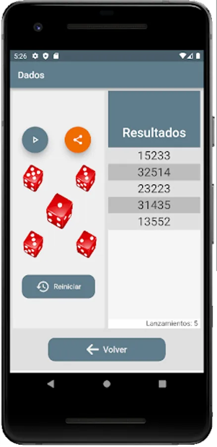- Simulate the successive throw of dice. Being able to configure the number of dice to throw, between 1 and 5.