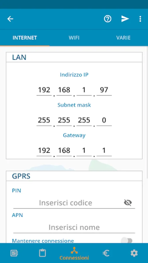 - configure the connection parameters to cloud8816 (by mcf88 SRL)