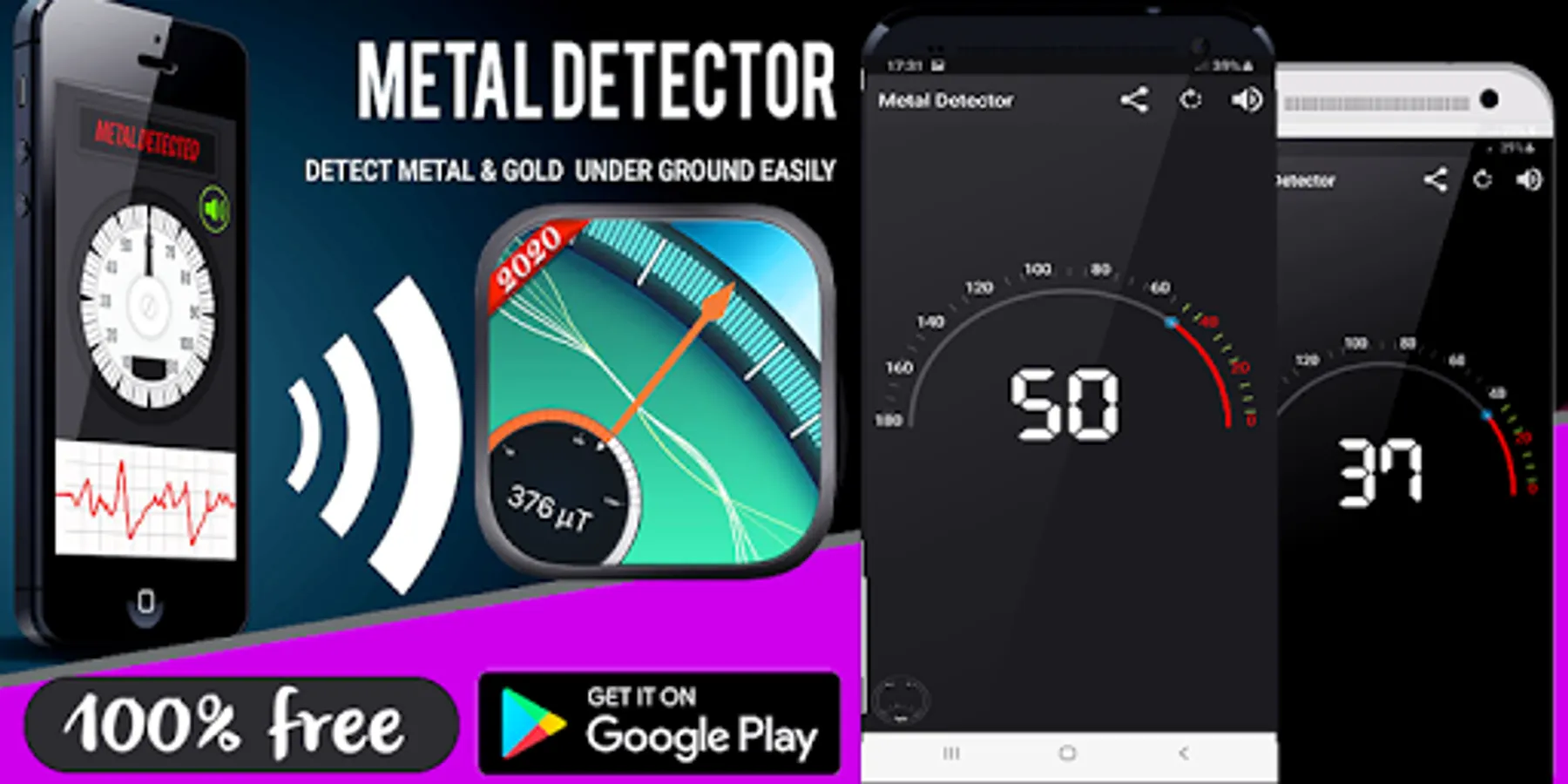 Metal detector pro 2020 is a simple detective tool which detects the presence of metal nearby by measuring the magnetic field value. This Free metal detector tool uses the magnetic sensor built-in your smart phone and shows magnetic field level in ṁT (microtesla).