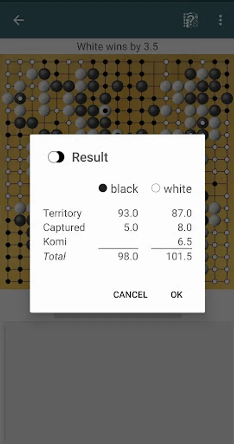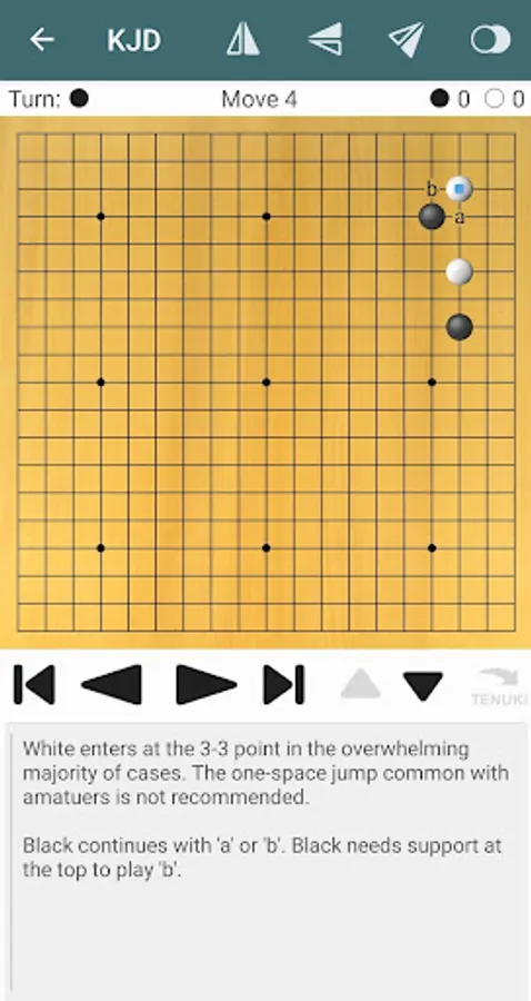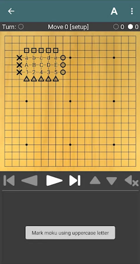 - Game review/study: replay a game on the board while the app only accepts the game moves. Ask for hint: show 5x5 square containing next move (size adjustable in settings)