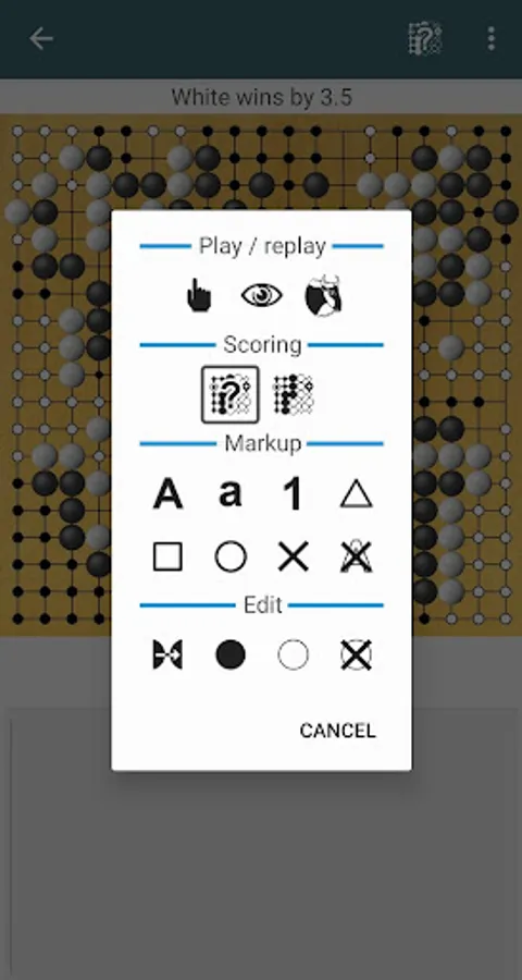 BW-Go (Black & White Go) is a flexible, easy-to-use SGF editor to record, analyze, study and replay Go / Igo / Weiqi / Baduk games. A Gnu Go computer player is available as a separate download to play against Android.