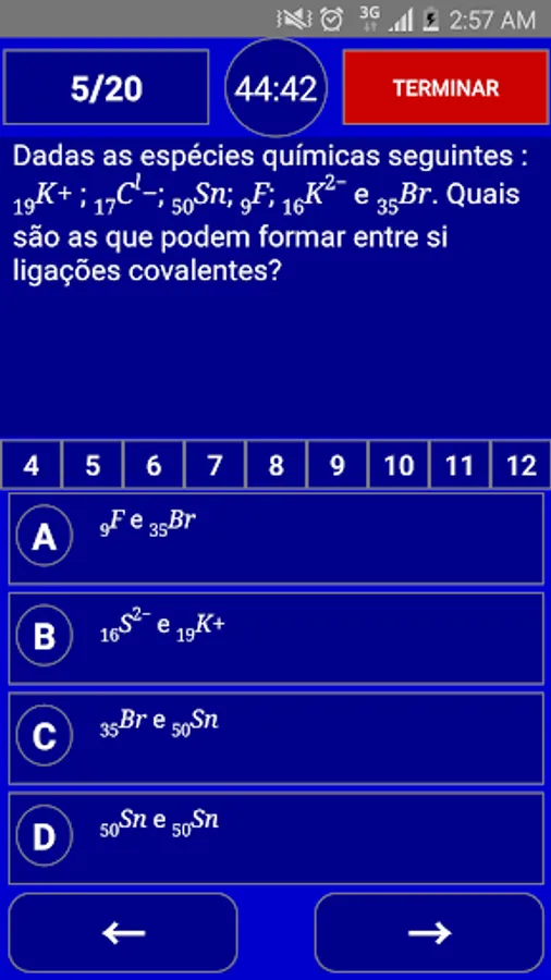 Prepare yourself for the different exams of class 12 with the help of this simple and direct application through small tests with issues related to the examination you intend you prepare. At the moment this app helps you prepare for the exams of the following subjects: Portuguese, English, French, history, geography, philosophy, biology, mathematics, physics and chemistry. Each discipline has 320 questions divided into 16 tests.