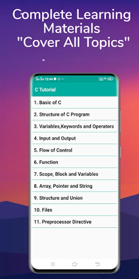 On the Learn C Programming app, you can find C Programming Tutorials,