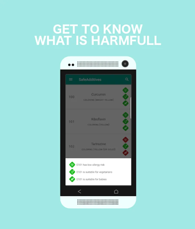 With help of this application you'll find out additives suitable for little babies, vegetarians and people with allergy