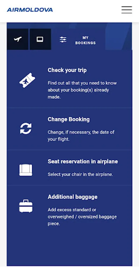 Get the instant access for booking your flight, buying your tickets, check-in online and other services you need for your flexibility.You can use Air Moldova application to access all services you need for your Air Moldova flights.
