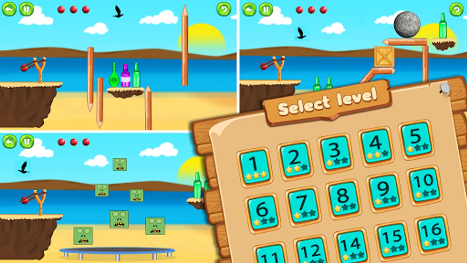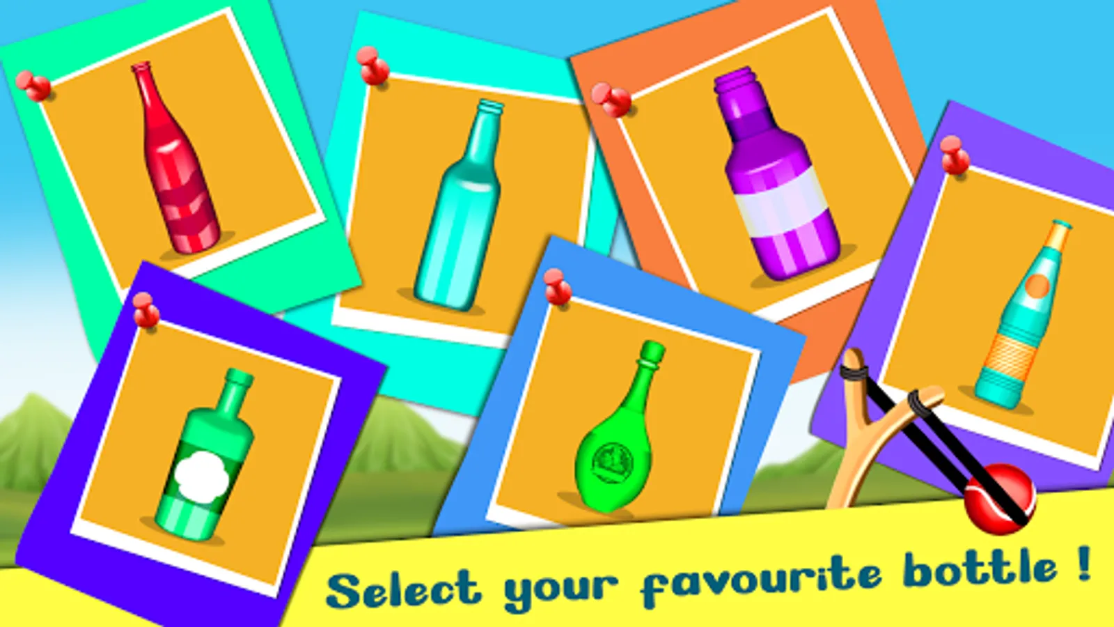 A bottle shooting game where you have to hit and knock the bottles down using a slingshot.