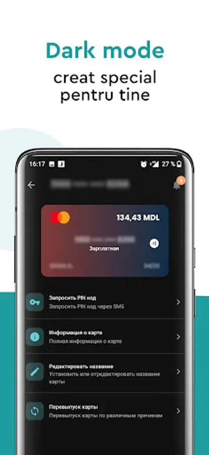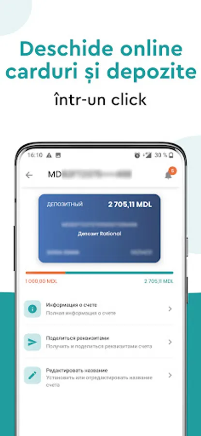 • Vizualizarea și transmiterea rechizitelor cardurilor și a conturilor pe care le deții;
