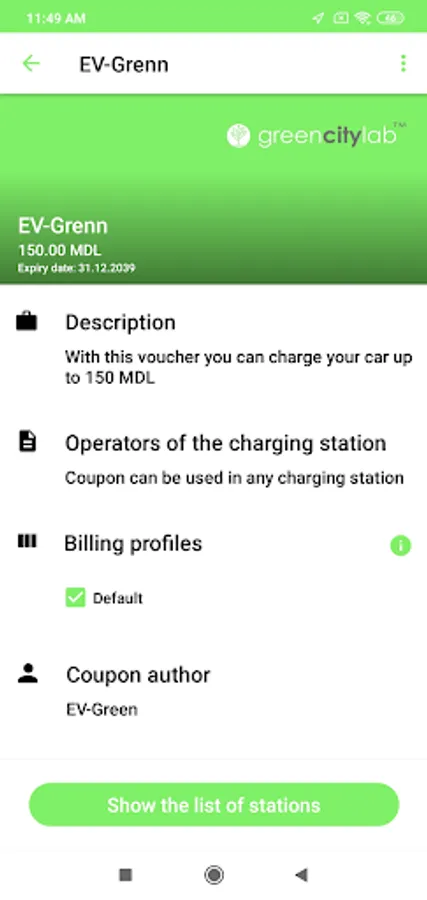 Thanks to EV Green app you will charge your electric vehicle. Install the app, open an account, find a charging point and charge your electric vehicle. Pay by credit card or reduce fees through coupons. Control your business expenses thanks to billing profiles.