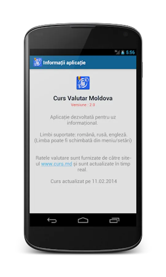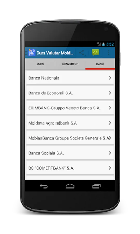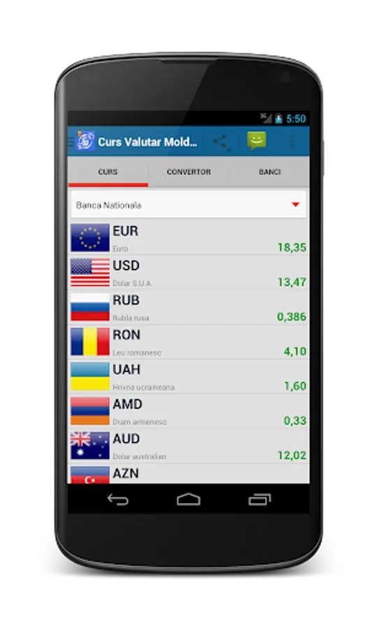 Exchange updated to the minute. The application presents ratelete Exchange Moldova for the most popular banks / exchange offices. Currently working with over 65 banks and exchange houses. Thus you can be updated at any time with real-time exchange rates. With the aid application can find the best exchange rates.