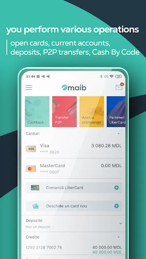 To benefit from the advantages of maibank, you need to install the app and have an account/card opened at maib.