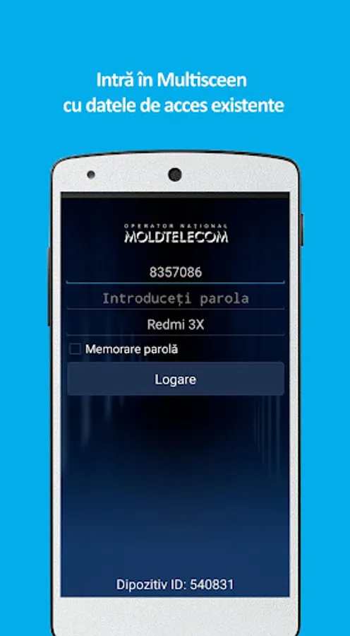 1. Complete the online application on www.moldtelecom.md/multiscreenGo. E-mail will be sent your login and password.