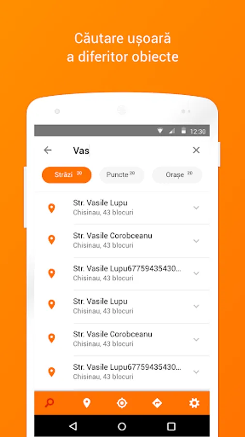 - Quickly find the correct street name, house or place/organization in any city of Moldova.
