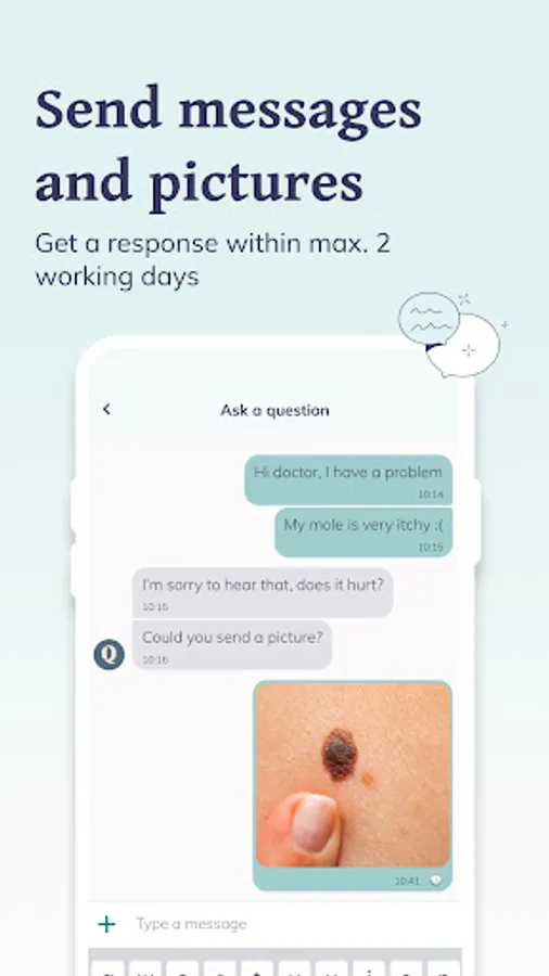 Send messages and/or pictures of your health issue to your GP practice. You will get a response within two working days. Together, you will decide which further steps to take.