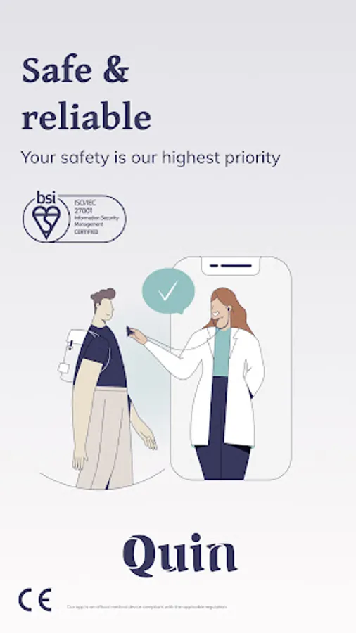Your safety is our highest priority. The Quin app is an official medical tool and complies with all the corresponding legal regulations. Your information is handled safely and confidentially. It will only be shared with healthcare professionals if you give your consent.