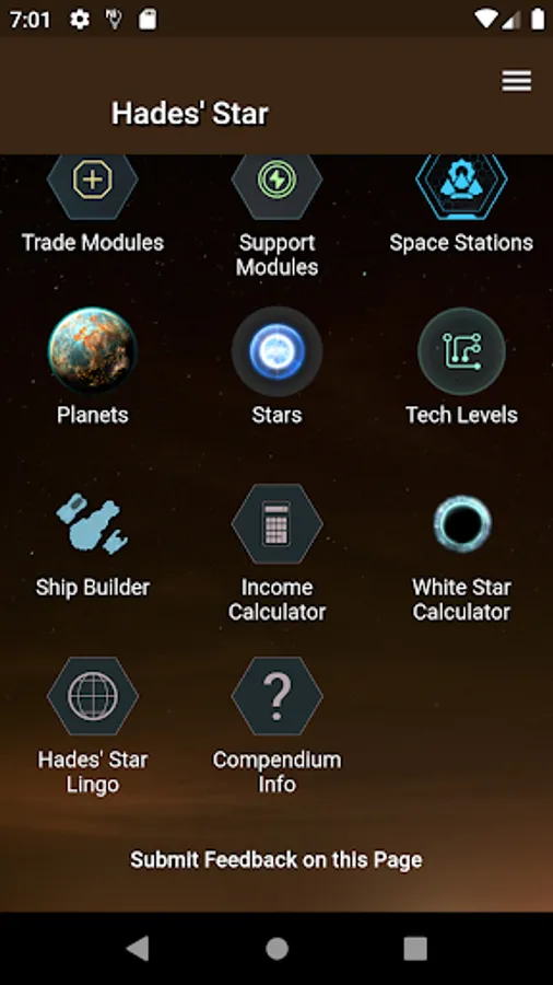 Facts, figures and other information is ready at your fingertips in the Hades' Star Compendium, as well as several interactive tools - Income calculator, White Star calculator, Ship Builder, Tech Levels and more.