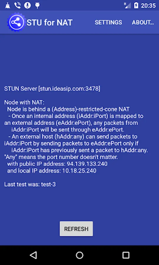 For this purpose, the Simple traversal of UDP over NATs (STUN) protocol was developed (RFC 3489, March 2003). It classified NAT implementation as full-cone NAT, (address) restricted-cone NAT, port-restricted cone NAT or symmetric NAT and proposed a methodology for testing a device accordingly. However, these procedures have since been deprecated from standards status, as the methods are inadequate to correctly assess many devices. New methods have been standardized in RFC 5389 (October 2008) and the STUN acronym now represents the new title of the specification: Session Traversal Utilities for NAT.