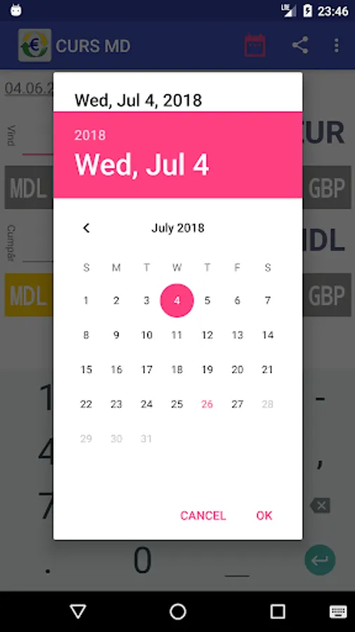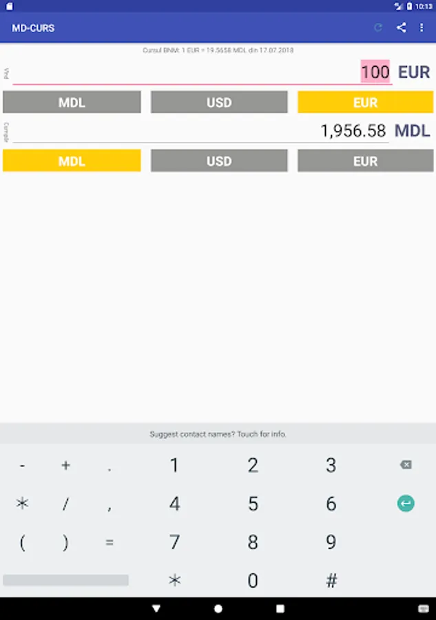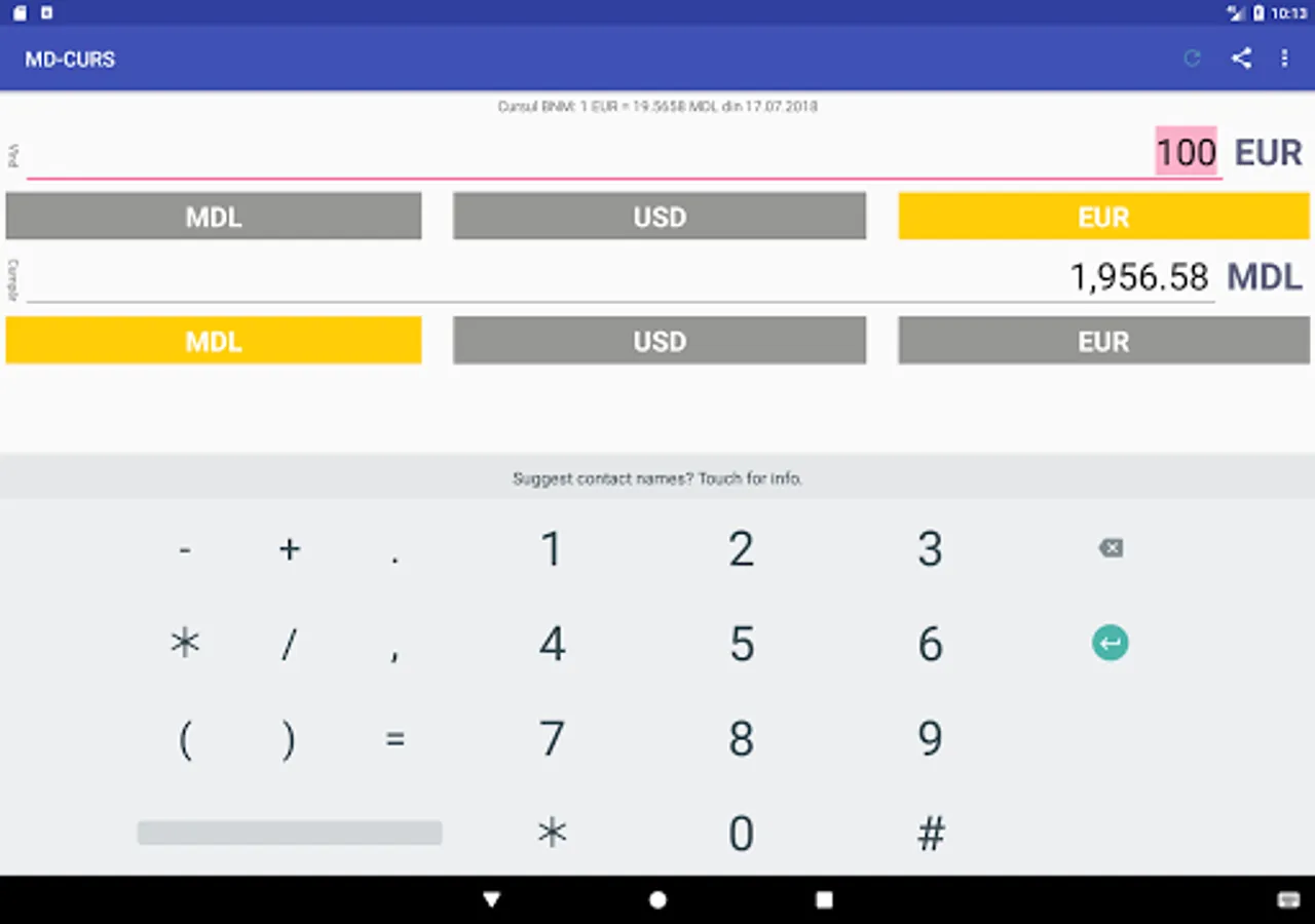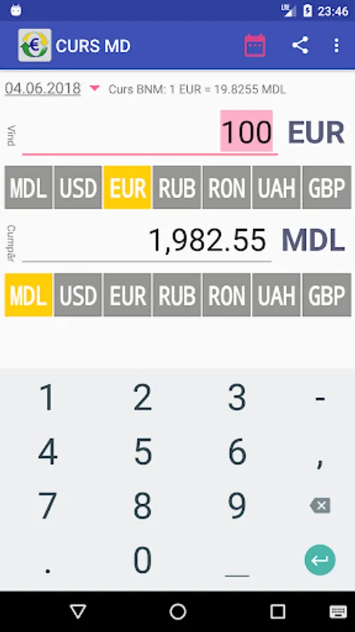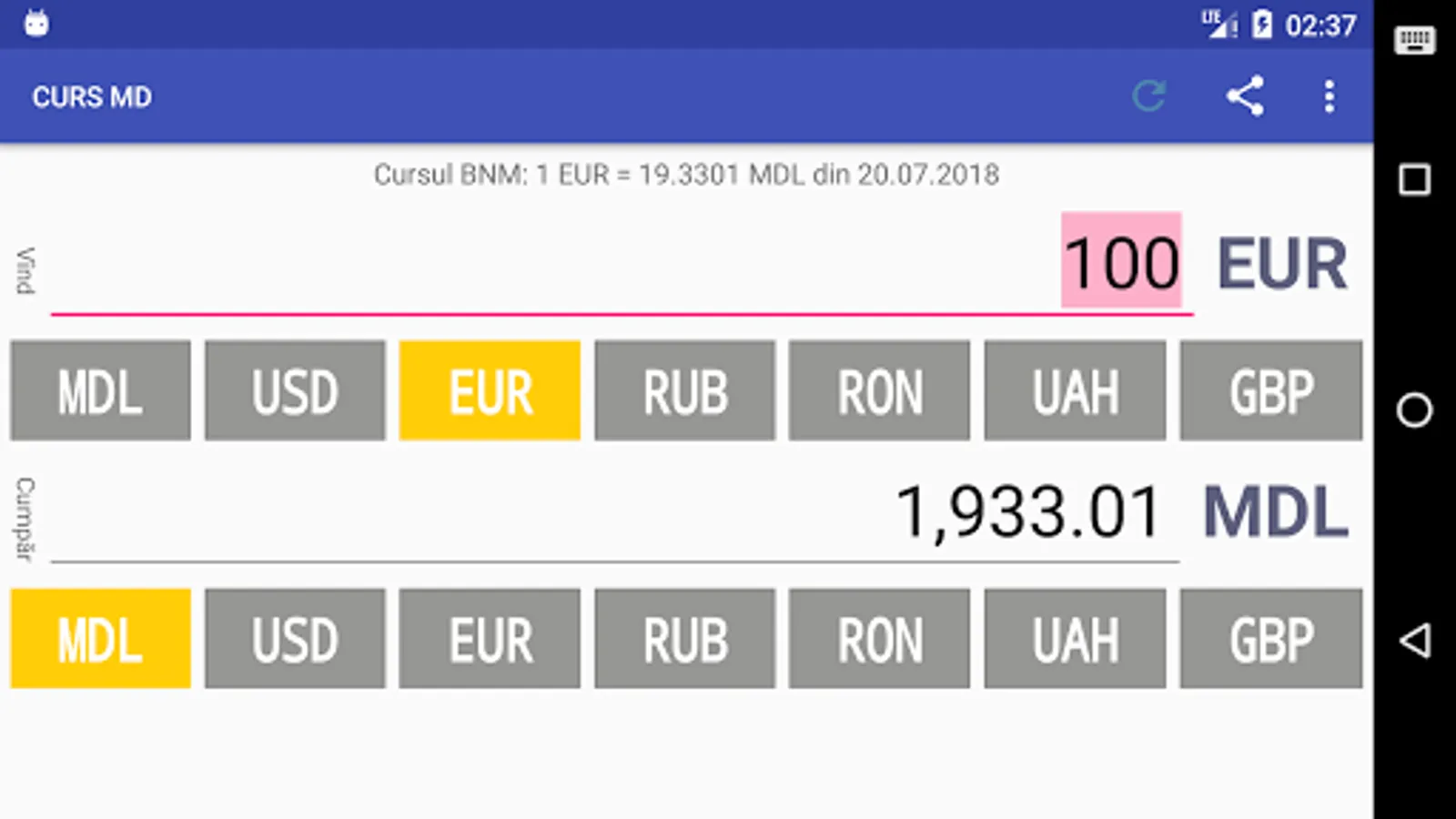Currency exchange calculator adjusted to the official rate of the National Bank of Moldova (NBM) for the date concerned.