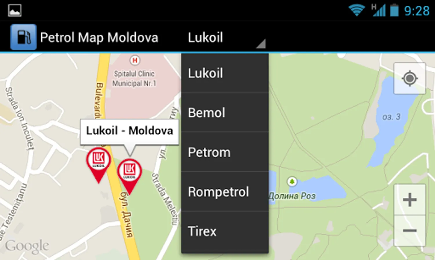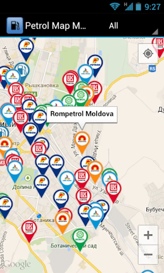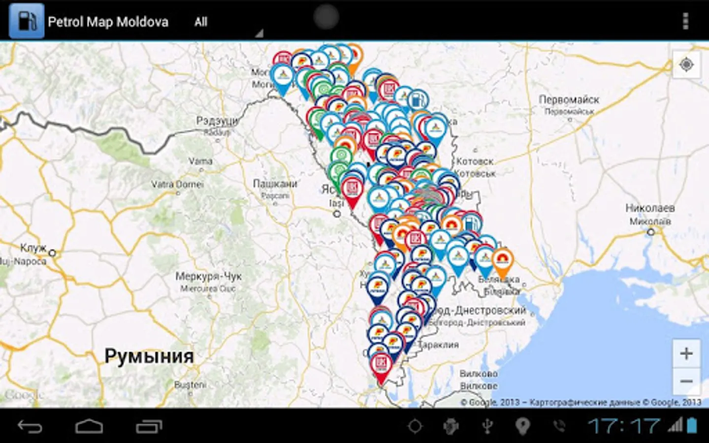 Map of filling stations in the Republic of Moldova (over 400).
