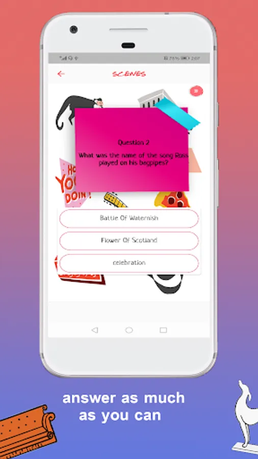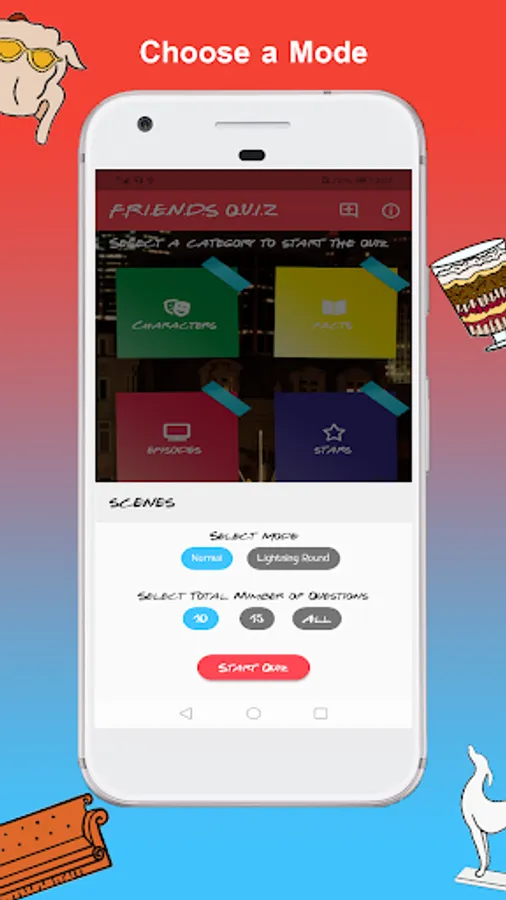 The game has 6 Categories each with many question and levels to test your knowledge and get Know a lot of interesting facts about the show and the stars