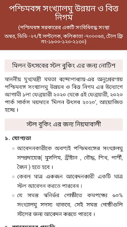 A Job fair is going to be organised during the Milan Utsav, 2020 at Park Circus Maidan, Kolkata on 3rd, 4th and 5th February, 2020 by WBMDFC to provide a platform for both Corporates (Companies) and Candidates (job seekers) to connect each other. More than forty companies are expected to participate with job offer of all types/levels including Security Guard, BPO, IT, Marketing, etc. Interested candidates may apply on-line in the link given below