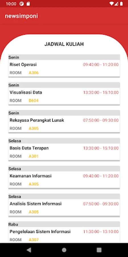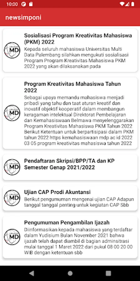 Simponi Mobile (Information System and Online Learning) is an application developed by Multi Data University Palembang to make it easier for students to get information related to lecture activities at MDP University