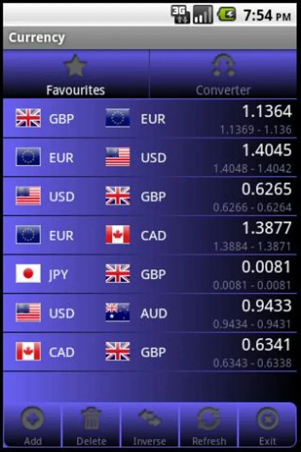 * Facility to add, remove and refresh currencies