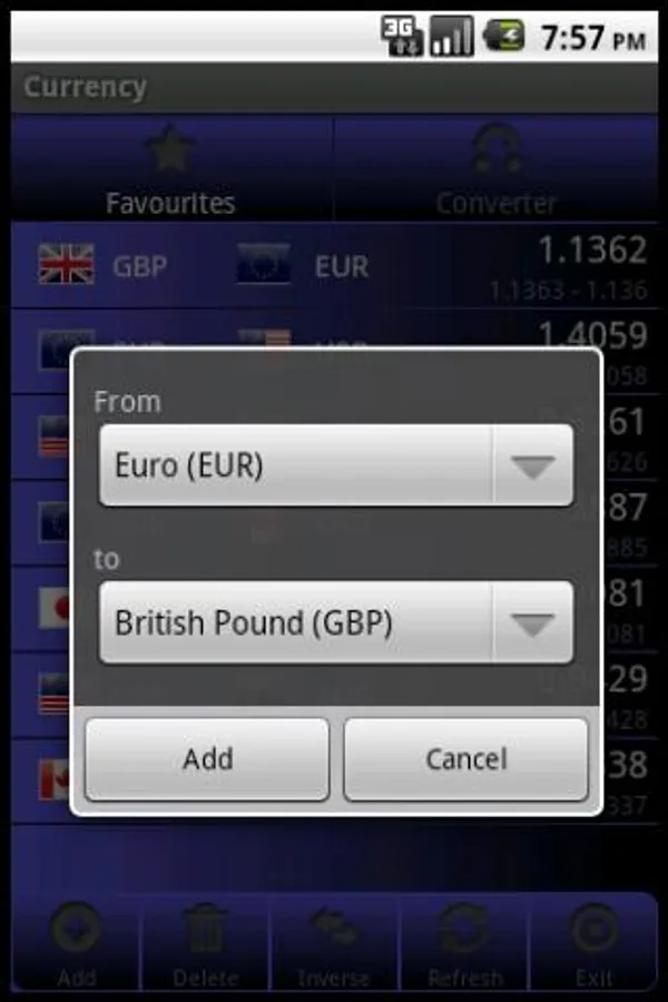 * Facility to add, remove and refresh currencies