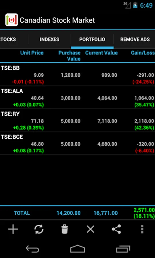 Track Stocks and Indices from Toronto Stock Exchange (TSX or TSE), Toronto, Canada.