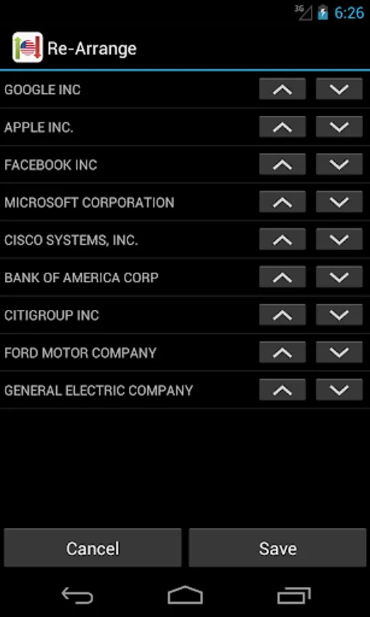 * Customizable list with ability to remove, add, re-order stocks/indexes.