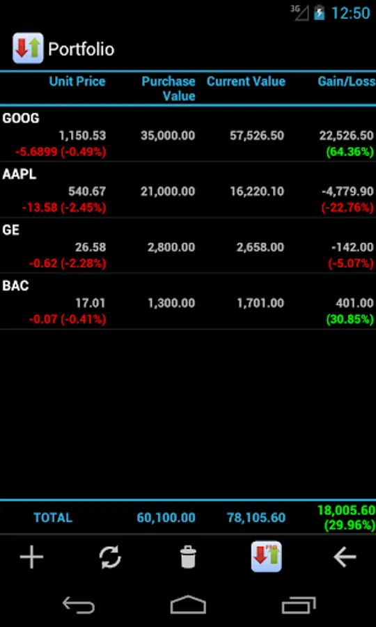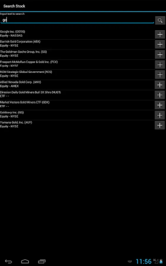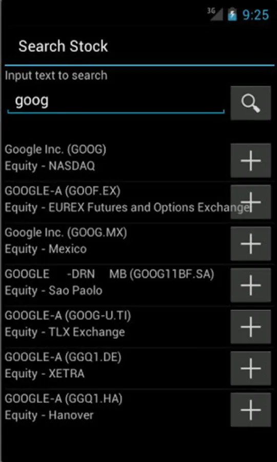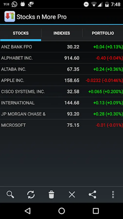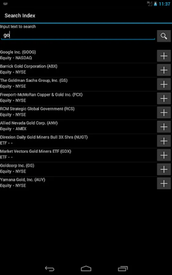 * Ability to search and add the stocks, indexes and other financial assets in your list.