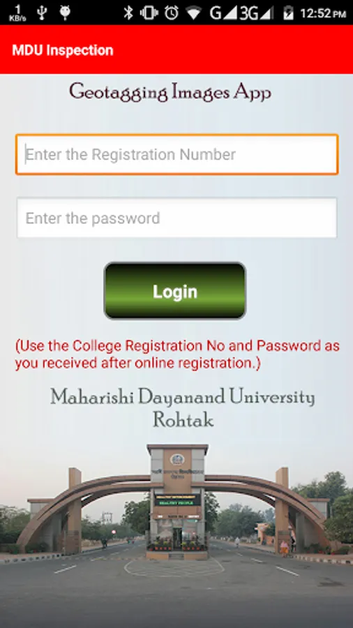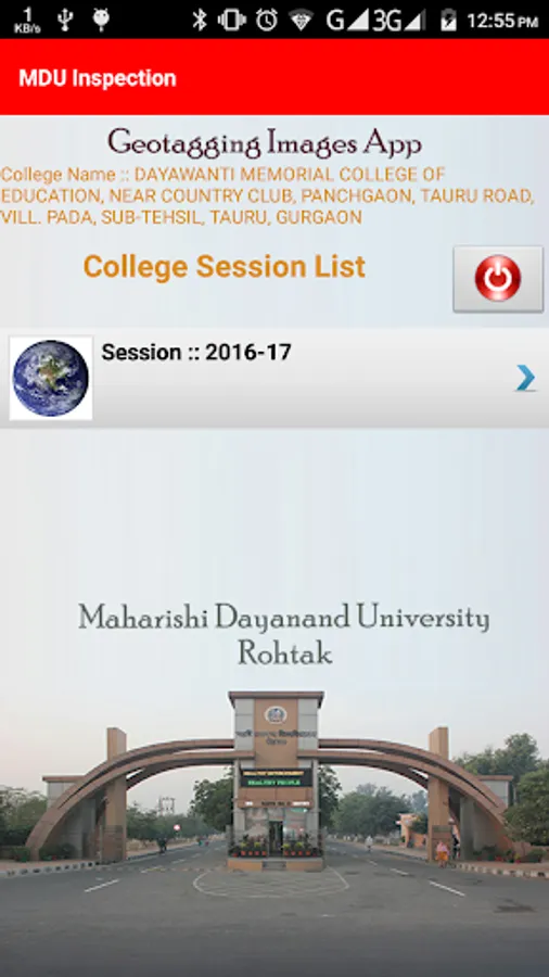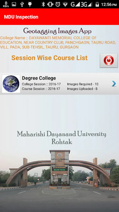 This application is used by the colleges affiliated to MDU, Rohtak. Haryana. With this application the college can clip the GeoTagged Images of Infrastructure and upload the same.