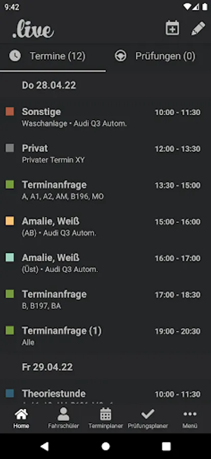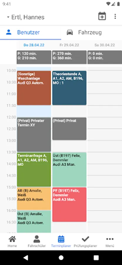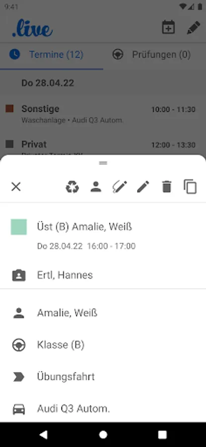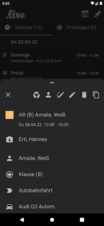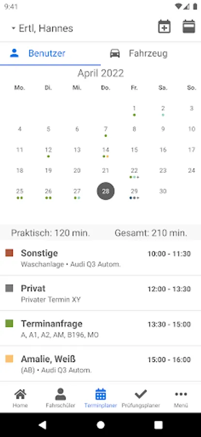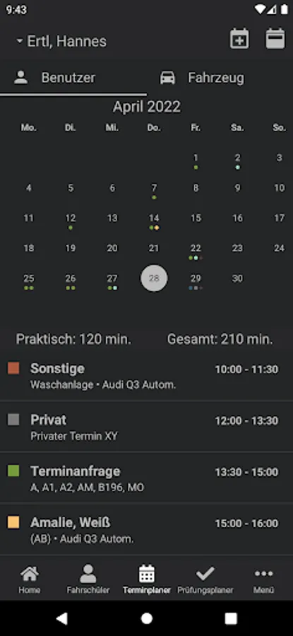 Easy appointment management thanks to drag & drop functionality in the driving instructor app.