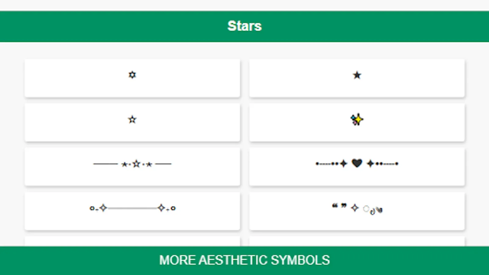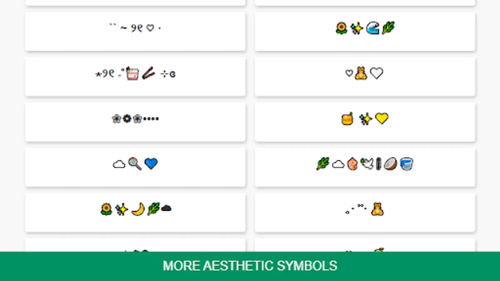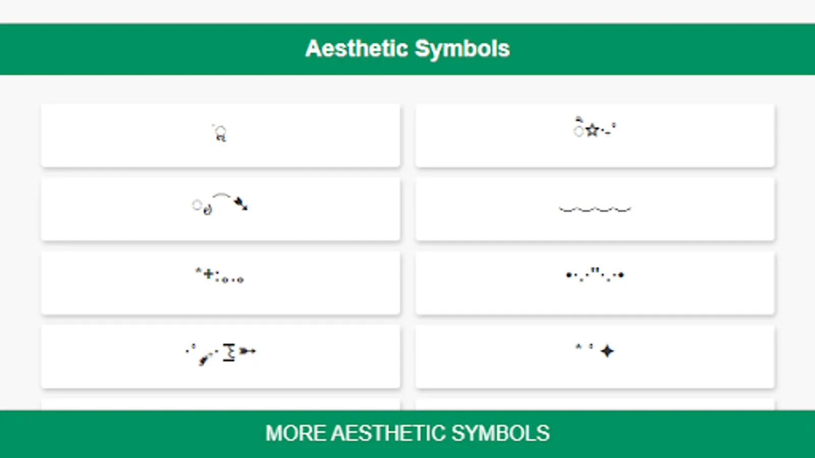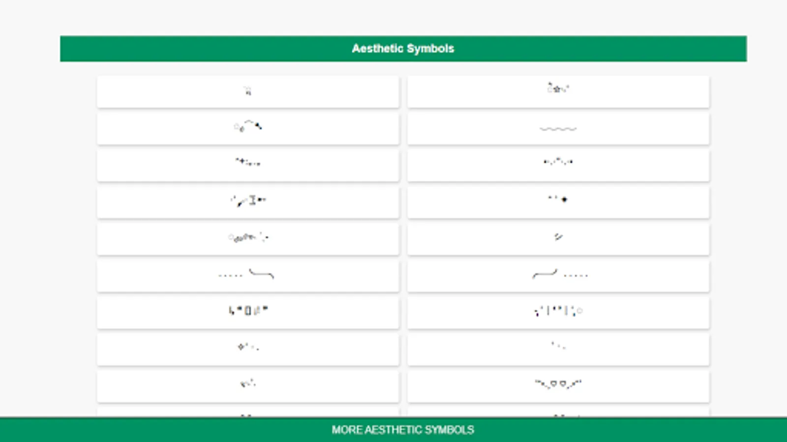 Aesthetic symbols, created from different text symbols and signs. Aesthetics symbols app, help you to easily copy and paste a cute symbols into a text message. You can also send these aesthetic text to your friends.