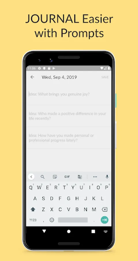 > Daily life & gratitude idea prompts that you can turn on & off in settings