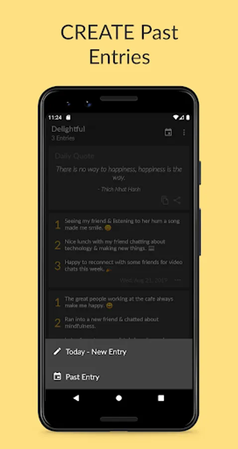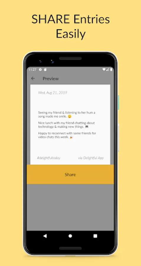 Delightful is a lightweight gratitude journal to record 3 good things from your day. Discover happiness in your day to day life. Your entries are all private and stored on your device. Practice daily gratitude today for free! No ads & no tracking.