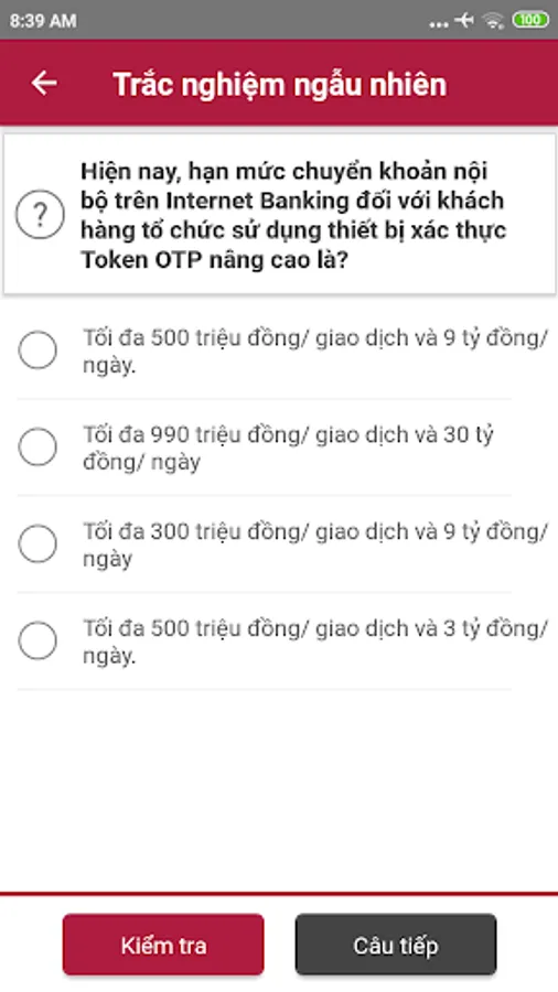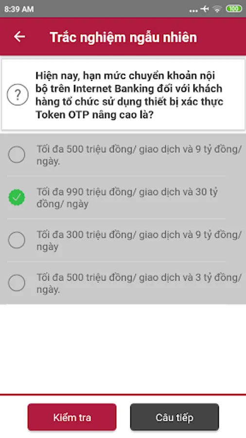 Application of professional knowledge test and Vietnamese Banking products and services.