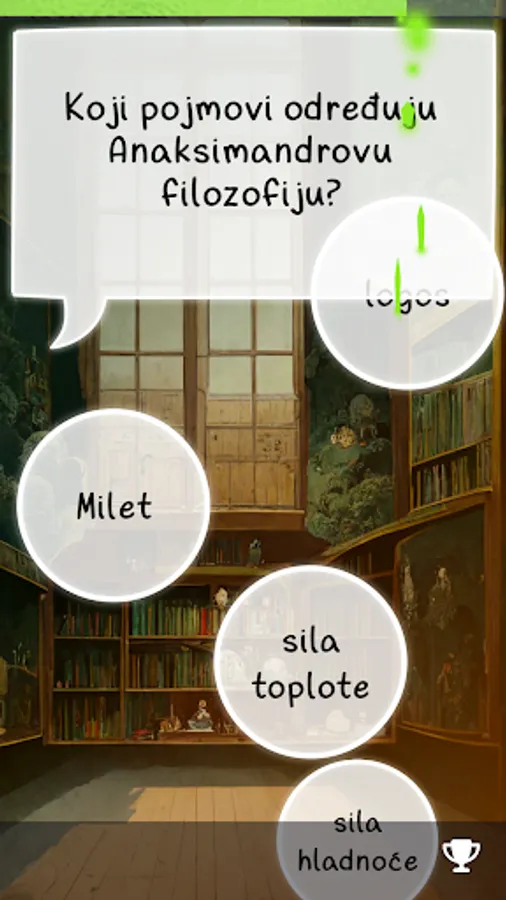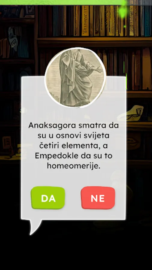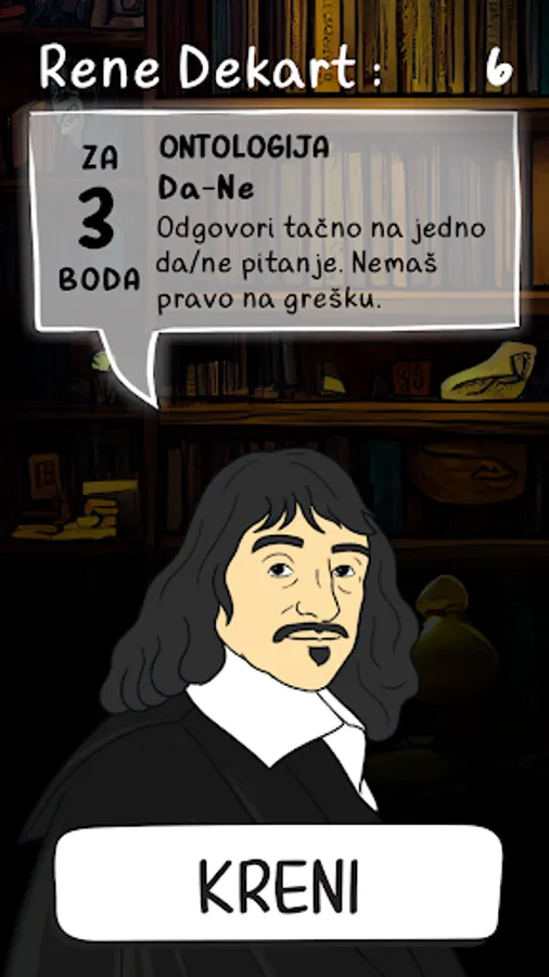 This game covers the material of the high school philosophy course and is intended for high school students and older. It is part of the wider project of educational games "Zuno Games".