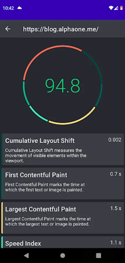 App requests webpage performance metrics from PageSpeed Insights API by Google and display the result in a beautiful and easy to understand dashboard.