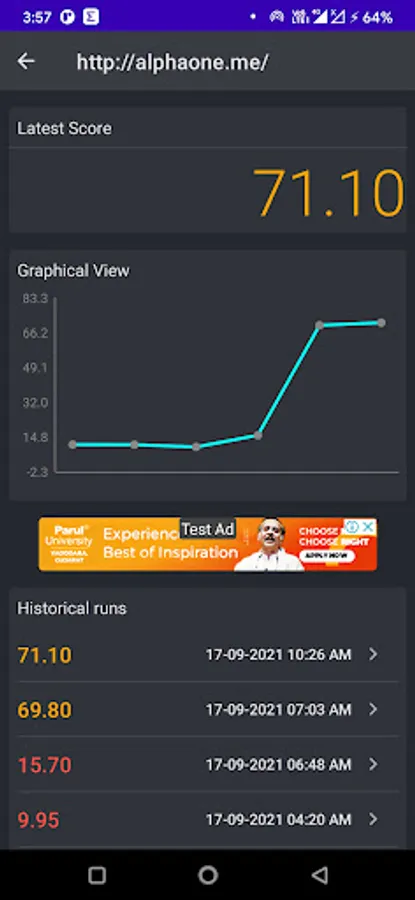 The app will track each test and give you a detailed history for each web page.