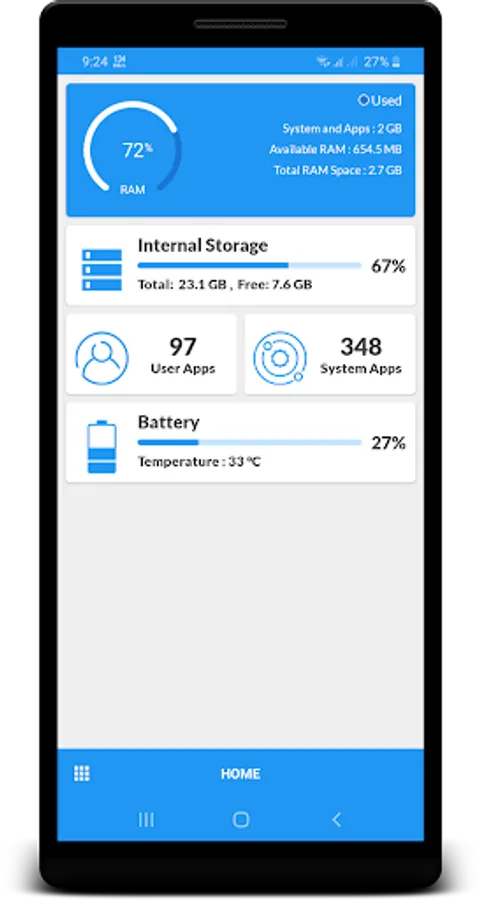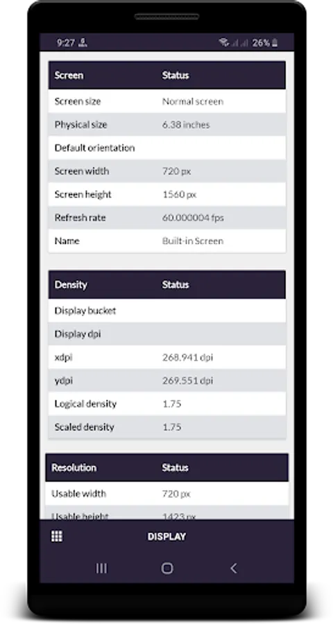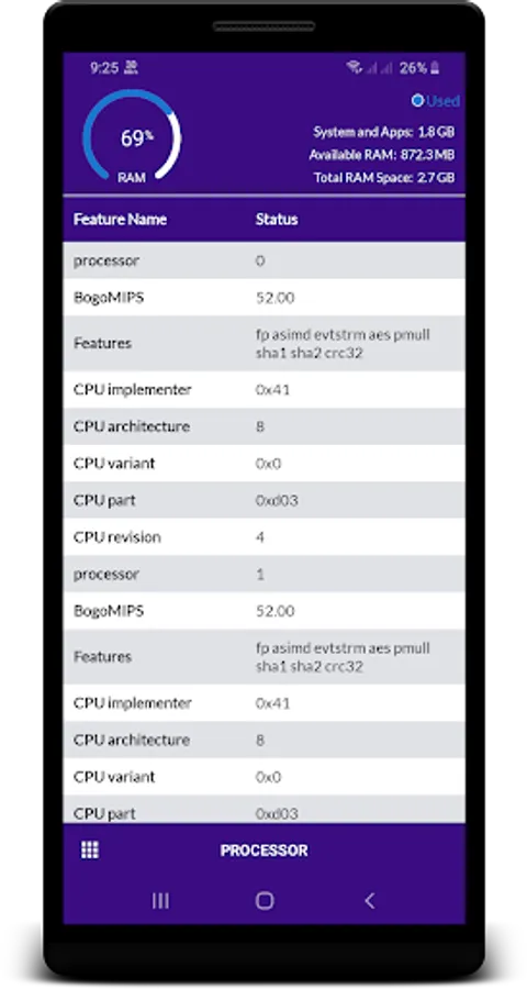 This app will show all information about your system in mealtime and high accuracy. You can see the status of your memory details , sensor details, hardware details etc