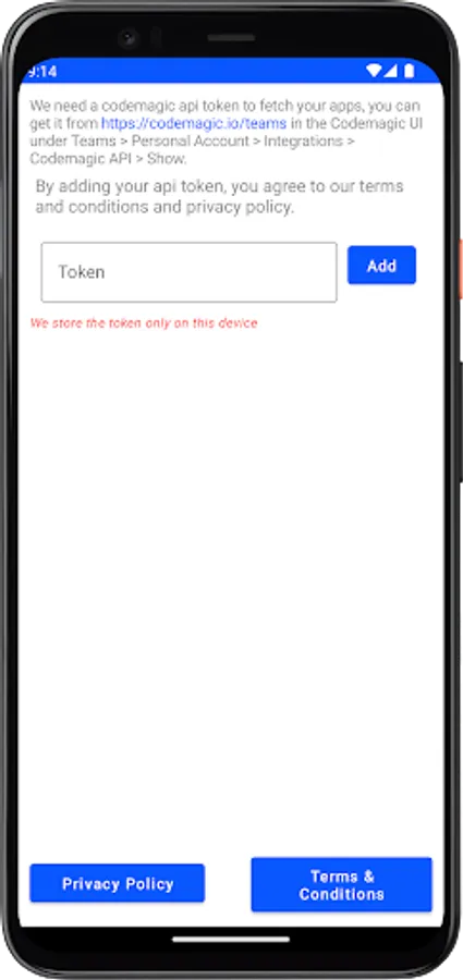 This app is not built by the team at CodeMagic, it is produced by an independant set of developers and any support requests should be raised in the app.
