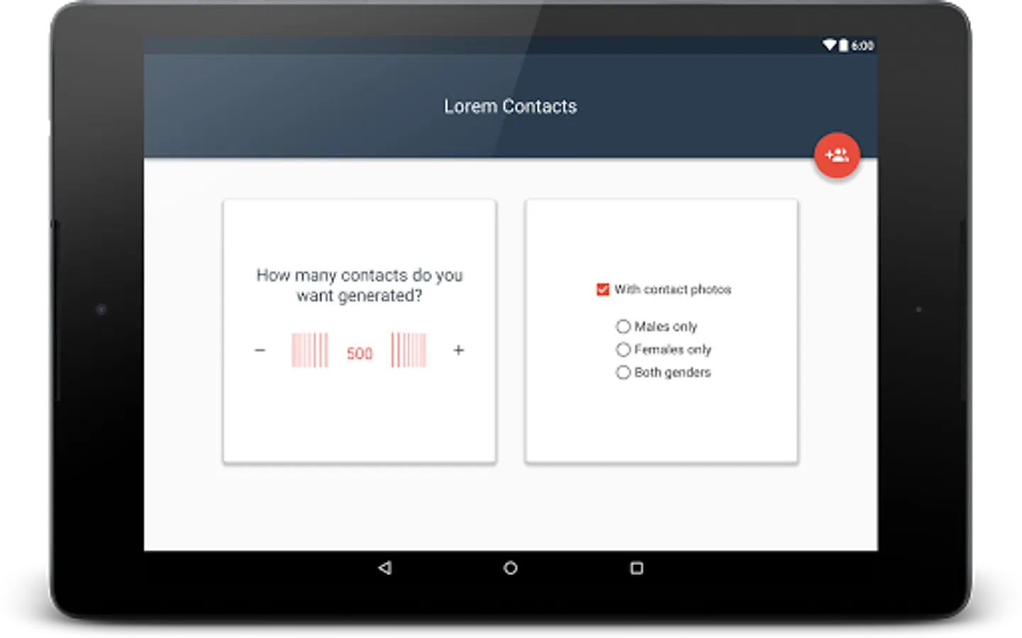 Have you ever found yourself in need of some randomly generated contacts?! Probably not. But we decided to build this app anyway. It's opensource, completely ad-free and fully adapted to all your basic contact generating needs. To put it simply... it fills your device's contact list with imaginary people (with pictures!) who you don't know.